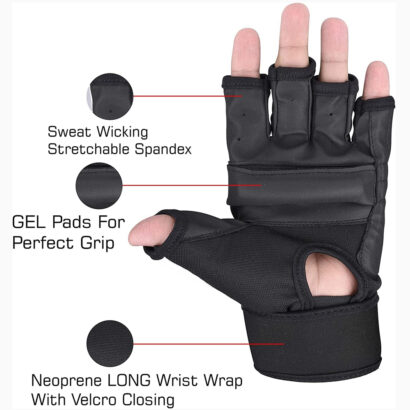 Sweat Wicking Stretchable Spandex On The Inside With Gel Pads For Perfect Grip.Knuckles And Front Is Made Up Of High Quality Leather And Padded With Rubber Gel And Foam.